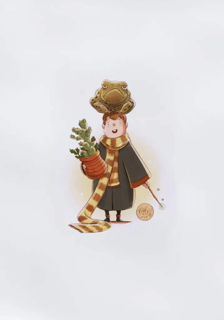Charming character poster of Neville Longbottom illustrated by Mike Maihack, showing his heroic transformation. Shop Hogwarts Legacy Neville Longbottom Character Art Poster & level up your space.