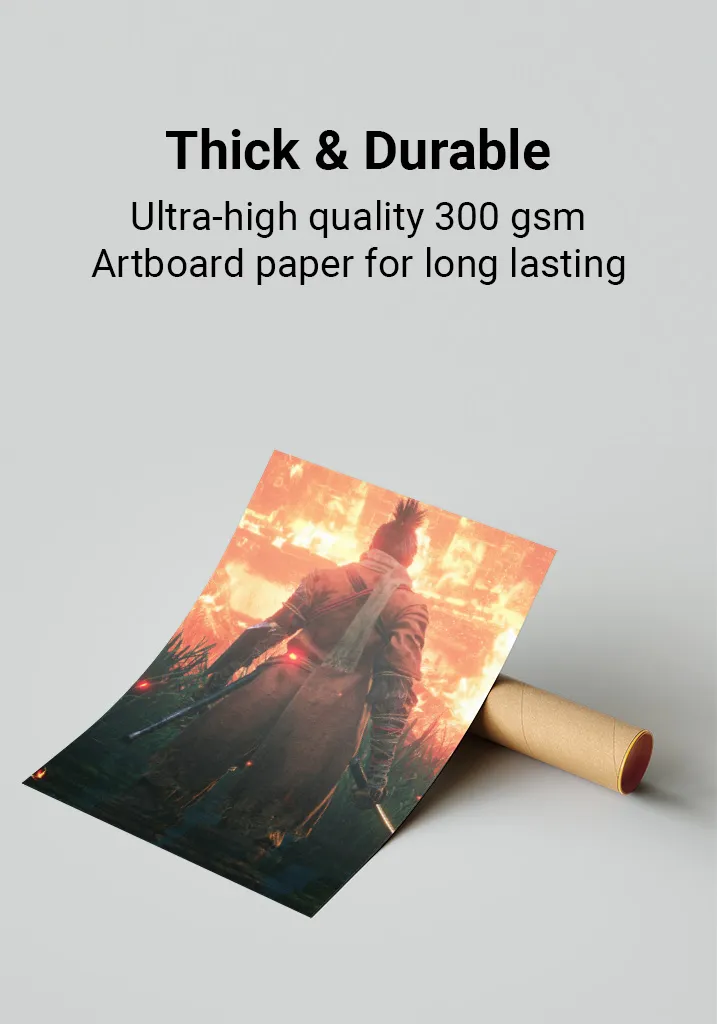 Premium Quality: Sekiro posters are printed on ultra-thick 300gsm, glossy art-board paper for a premium feel and lasting durability. The perfect addition to any gaming room, bedroom, or office. Available in multiple sizes to fit your space.