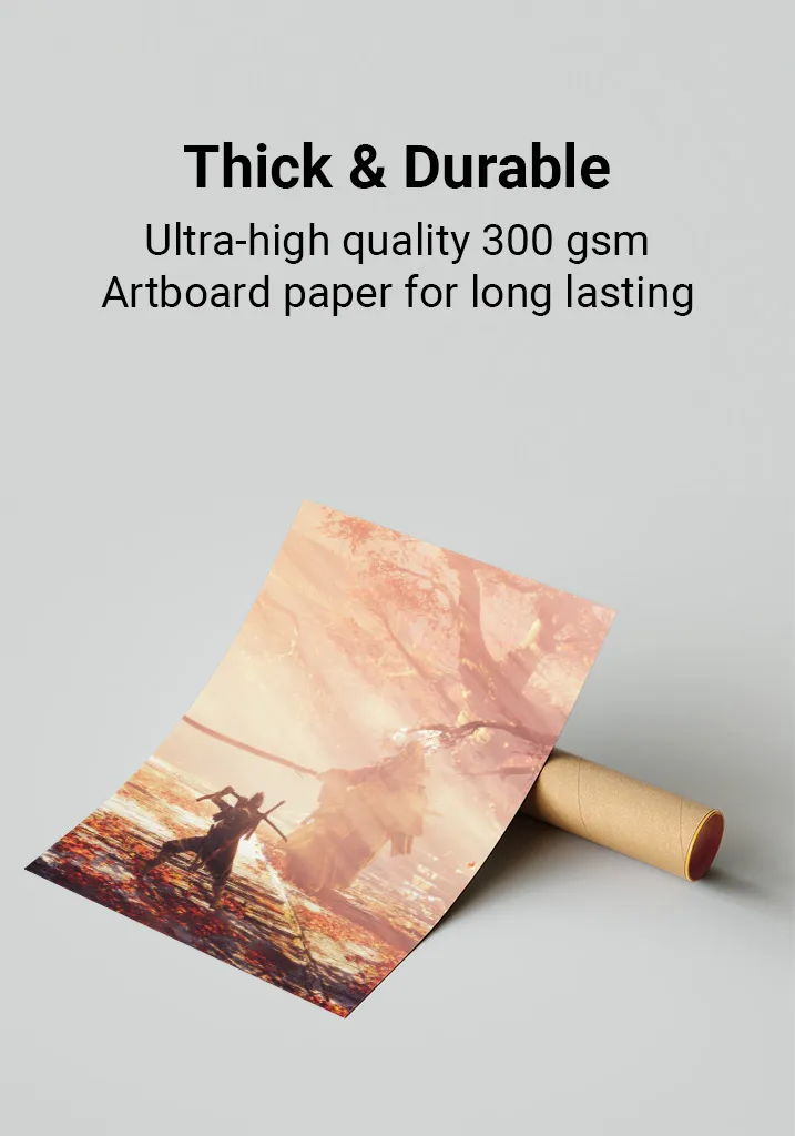 This Sekiro poster features high-resolution artwork printed on 300gsm thick, glossy paper to ensure vibrant colors & long-lasting durability.