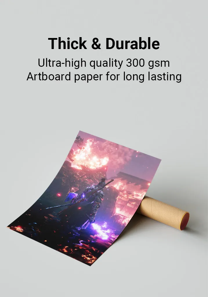 Premium Quality: Sekiro posters are printed on ultra-thick 300gsm, glossy art-board paper for a premium feel and lasting durability. The perfect addition to any gaming room, bedroom, or office. Available in multiple sizes to fit your space.