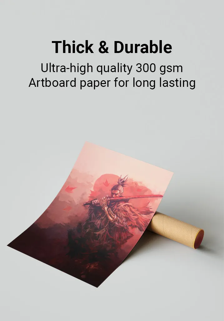 This Sekiro poster features high-resolution artwork printed on 300gsm thick, glossy paper to ensure vibrant colors & long-lasting durability.